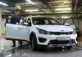 Машина оператора каршеринга "Яндекс.Драйв". Подготовка автомобиля перед выездом.