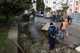 Жанровая фотография. Сотрудники коммунальных служб во время аварийно-ремонтных работ на проезжей…