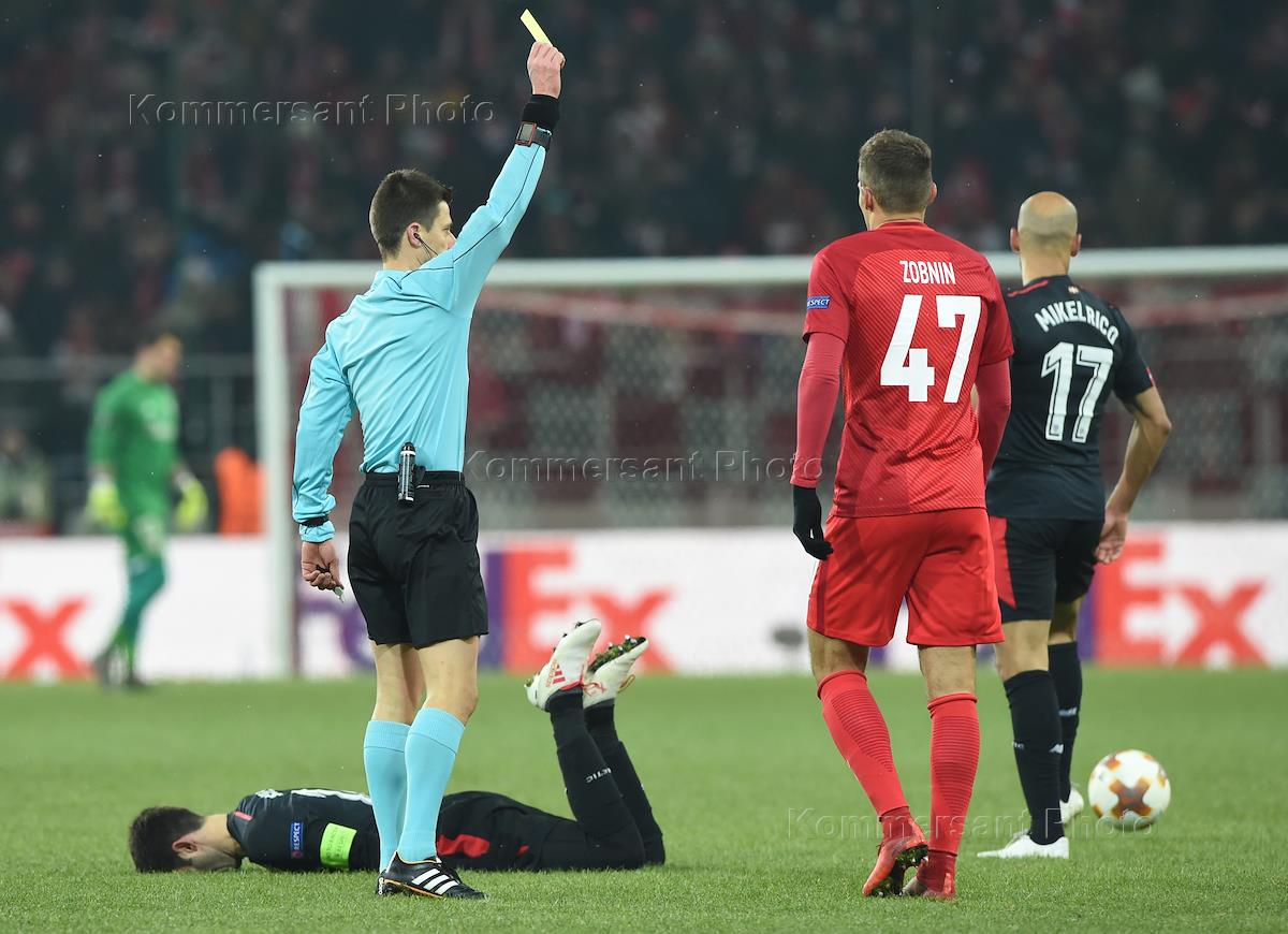 Чемпионат Лиги Европы по футболу. Матч между командами "Спартак" (Москва, Россия) и "Атлетик"…