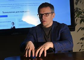 Руководитель департамента информационных технологий города Москвы Артем Ермолаев во время интервью.