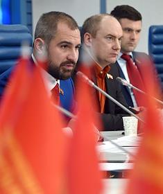 Кандидат в президенты России от партии "Коммунисты России" Максим Сурайкин (слева) и заместитель…