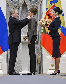 Торжественная церемония вручения премии в области науки и инноваций молодым ученым в Кремле.…