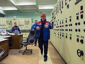 Эксперт Дубровин Владимир Александрович на центральном пульте управления (ЦПУ) на Рыбинской ГЭС.