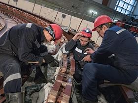 Сотрудники гидроремонта готовят к ремонту участок трубопровода осушающей системы здания…