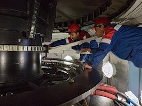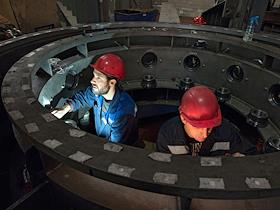 Бригадир монтажников гидроагрегатов Шкицкий Федор Иванович проводит работу по обтяжке крепежа ротора…