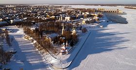 Подъем нового сегментного затвора для замены на водосливной плотине Угличской ГЭС.