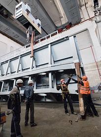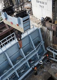 Установка нового сегментного затвора на пролете №2 водосливной плотины Угличской ГЭС.