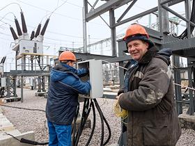 Монтажные работы на участке открытого распределительного устройства (ОРУ) Нижегородской ГЭС.