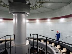 Машинный зал Нижегородской ГЭС. Ремонтные работы на гидротурбинном генераторе.