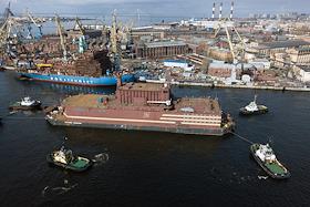 Плавучий атомный энергетический блок (ПАТЭС) "Академик Ломоносов" уходит из порта Санкт-Петербурга.