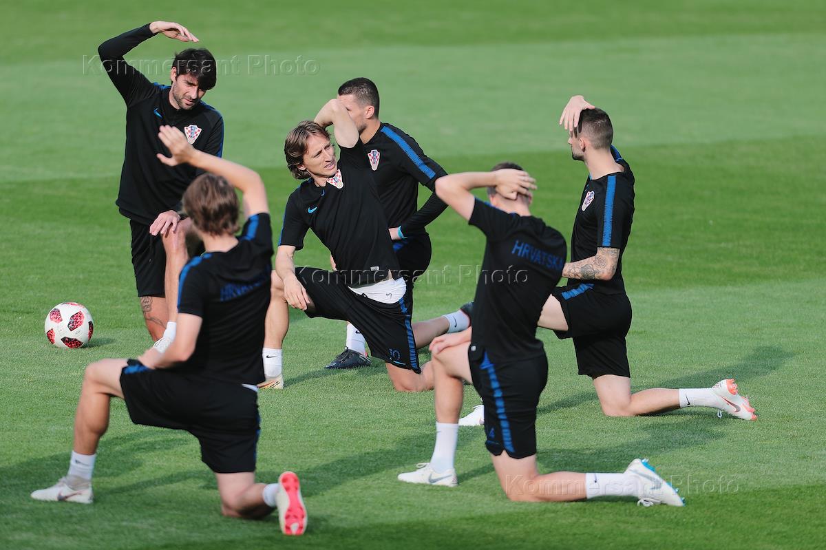 Чемпионат мира по футболу в России FIFA 2018. Игрок сборной Хорватии Лука Модрич (в центре) во время…