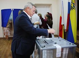 Единый день голосования. Губернатор Ростовской области Василий Голубев во время голосования на…