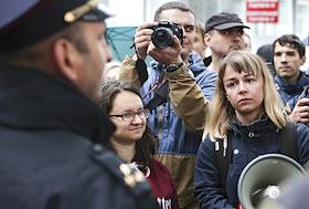 Акция сторонников оппозиционера Алексея Навального против повышения пенсионного возраста. Сотрудник…