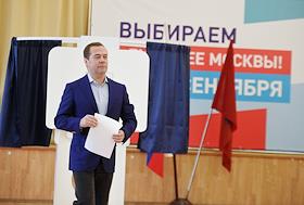 Единый день голосования. Председатель правительства России Дмитрий Медведев во время голосования на…