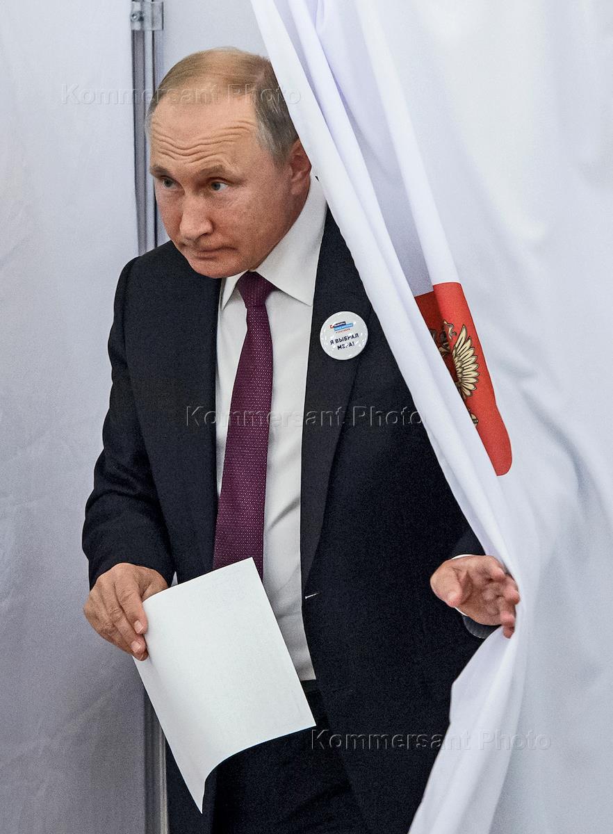 Единый день голосования. Выборы мэра Москвы. Президент России Владимир Путин во время голосования на…