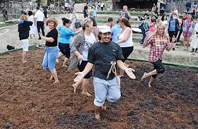 Жанровая фотография. Праздник сбора винограда прошел в парке "Викинг". Участники праздника танцуют и…