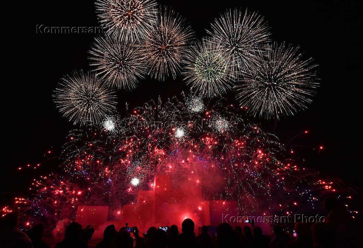 Церемония закрытия VIII Московского международного фестиваля "Круг света" на Гребном канале. Салют…