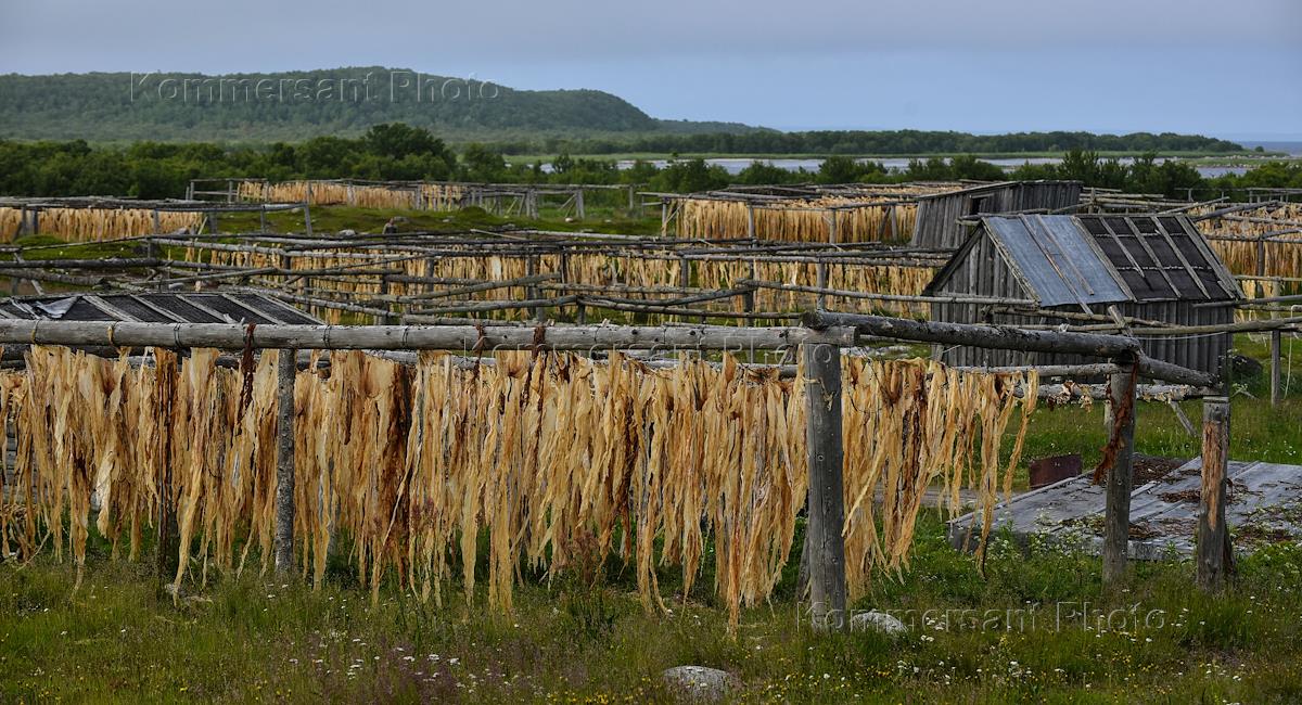 Соловецкие острова. Закрытый для туризма остров Малая Муксалма. Добыча морских водорослей. Сушка…