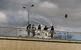 Акция памяти политика Бориса Немцова молодежного движения "Весна". Баннер "13.00. Борис. Страстной…