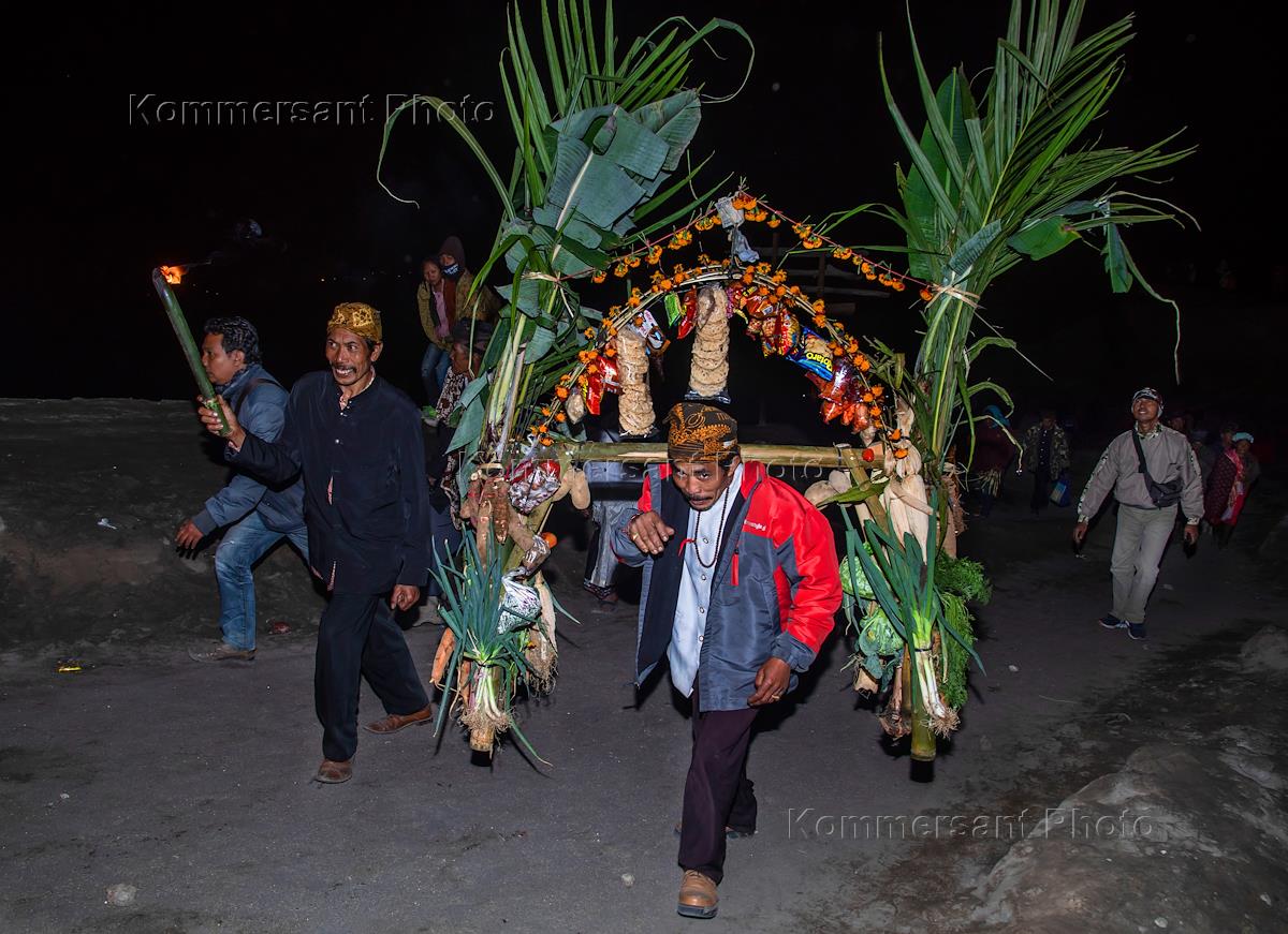 Праздник Yadnya Kasada на вулкане Бромо. В темноте, еще до рассвета, из храма к кратеру начинает…