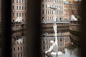 Установка скульптуры "ПапаWok" в акватории канала Грибоедова, анонсирующей выставку "Радикальная…