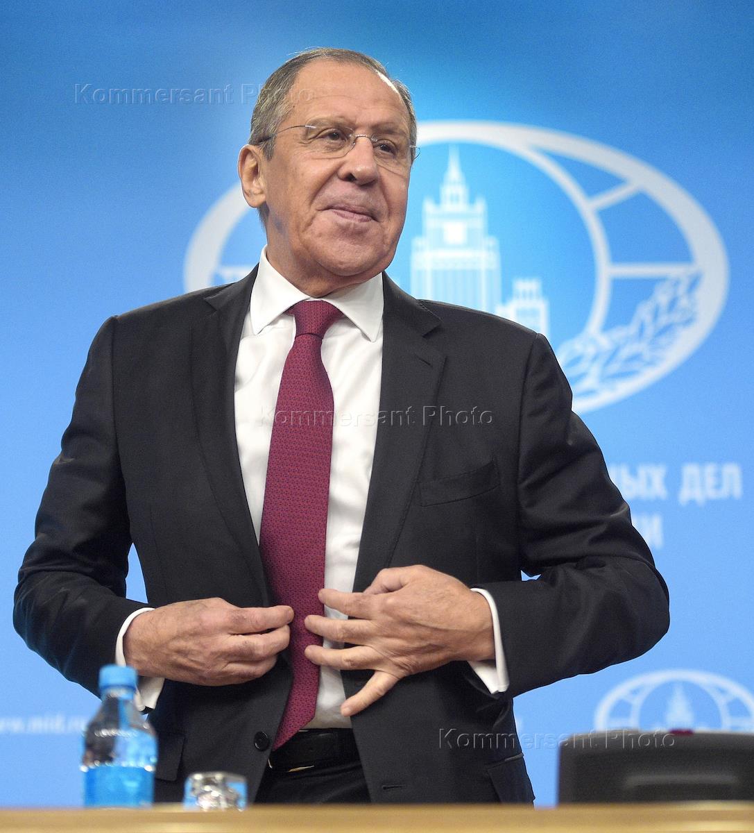 Министр иностранных дел (МИД) России Сергей Лавров в время пресс-конференции, посвященной итогам…
