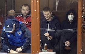 Участники группы, обвиняемые в глобальной хакерской атаке на российские банки, во время заседания…