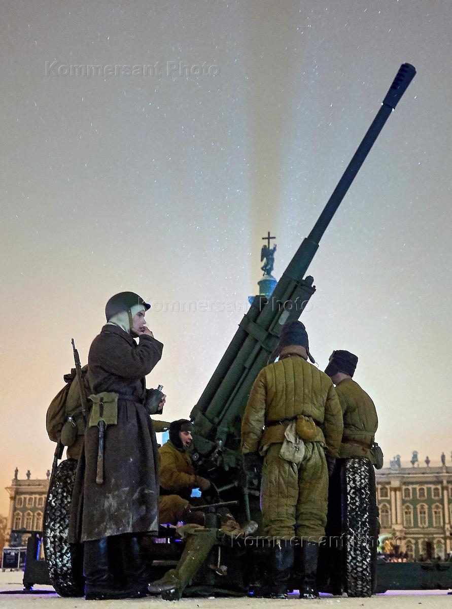75-й годовщина полного освобождения Ленинграда от блокады. Памятные залпы батарей зенитных орудий,…
