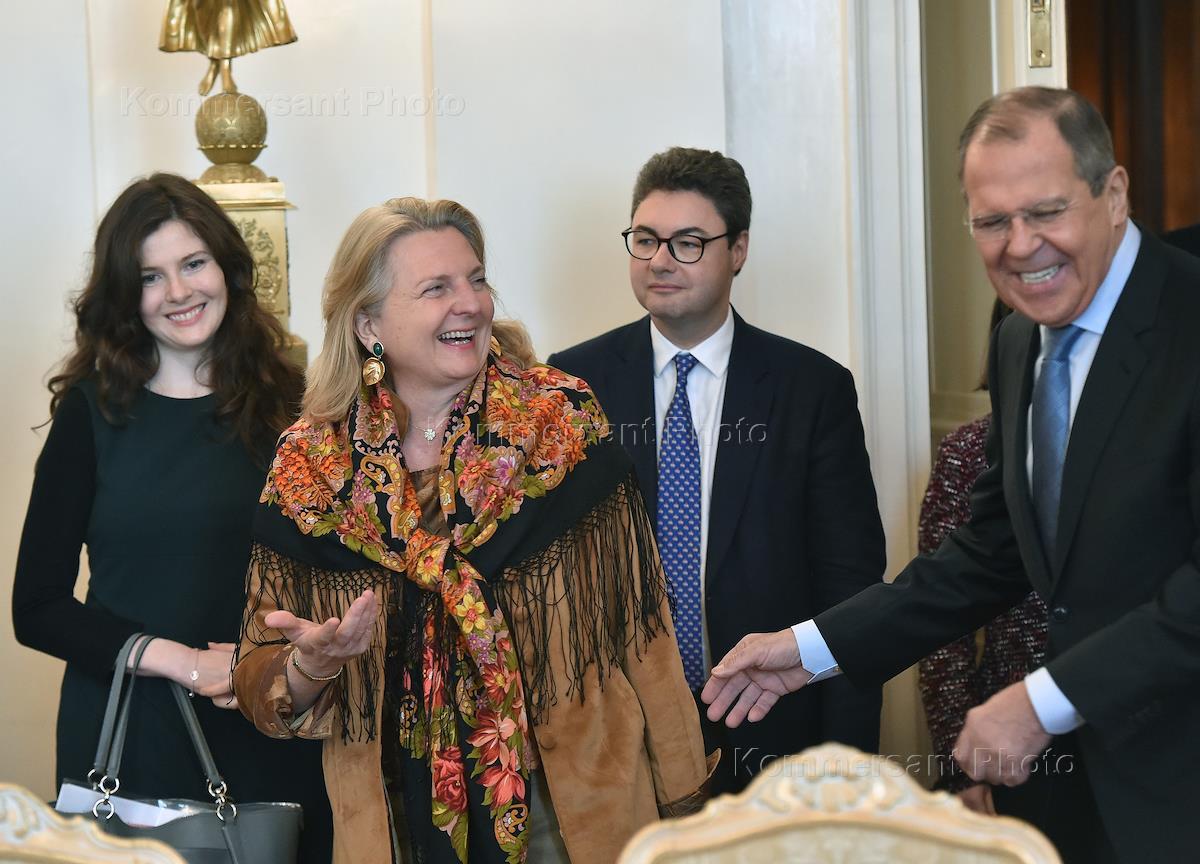 Russian Foreign Minister Sergei Lavrov (right) and Austrian Foreign Minister Karin Kneissl (second…