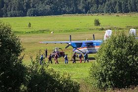 Отделение парашютистов с ограниченными возможностями с рампы самолета Ан-28 на аэродроме "Ватулино".