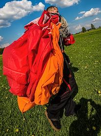 Спорсмен-парашютист с ограниченными возможностями Андрей Полянцев после приземления с парашютом