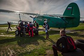 Спортсмены - парашютисты с ограниченными возможностями в ожидании посдаки в самолет Ан-2 на…