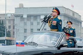 Репетиция парада Победы на площади имени Ленина в Новосибирске. Командующий 41-й общевойсковой…