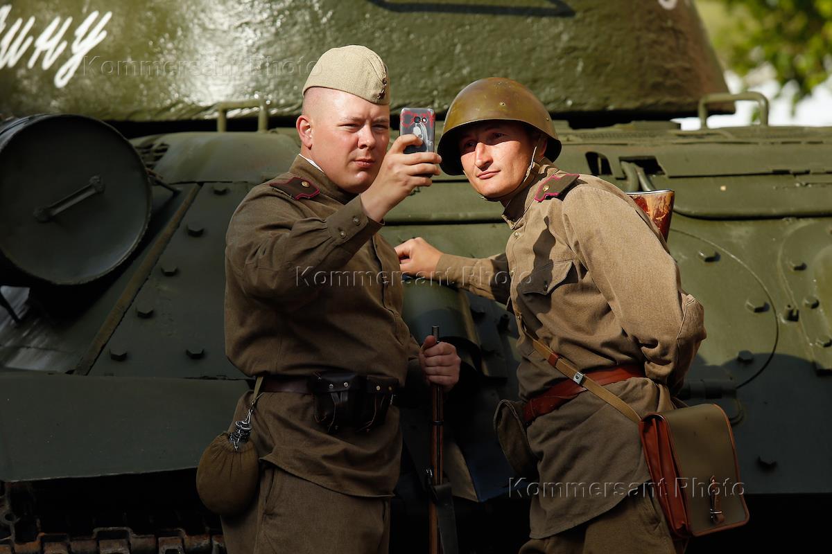 Празднование 74-ой годовщины Победы в Великой Отечественной войне. Участники во время акции памяти…