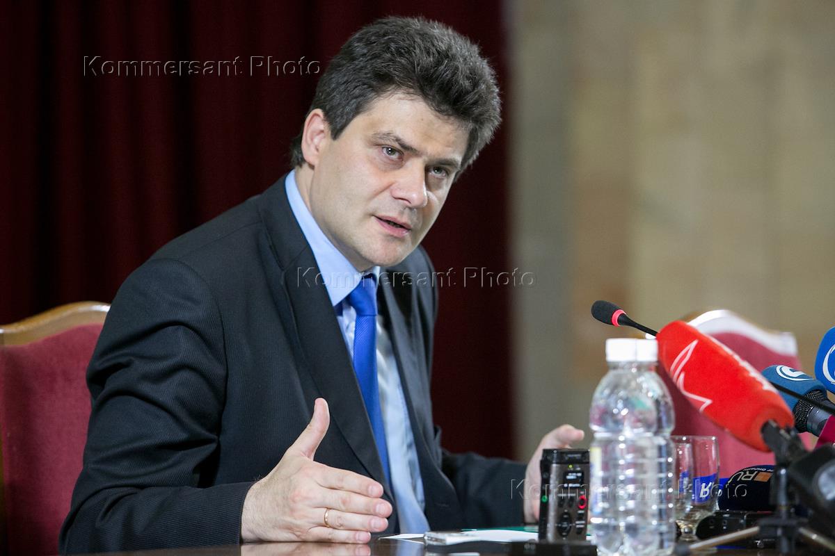 Глава Екатеринбурга Александр Высокинский на брифинге в здании городской администрации.