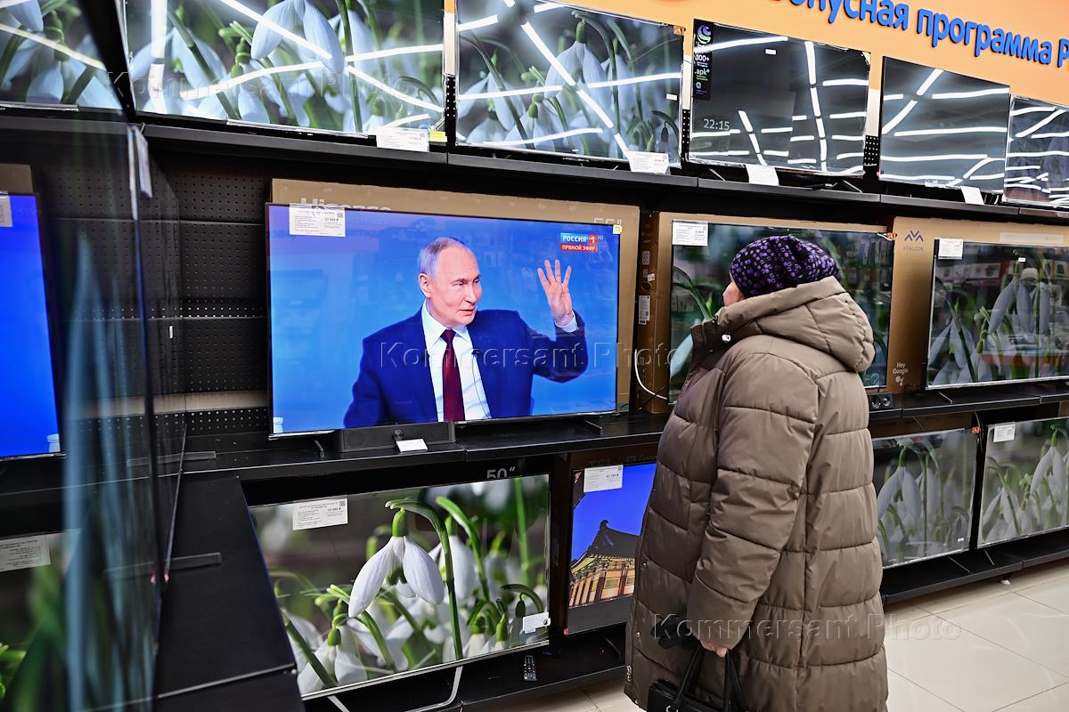 Жанровые фотографии. Трансляция программы "Итоги года" с президентом России Владимиром Путиным в…
