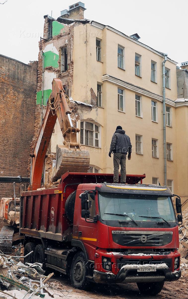Разбор завалов и демонтаж обрушившегося ранее жилого здания на Гороховой улице. Вид с Большого…