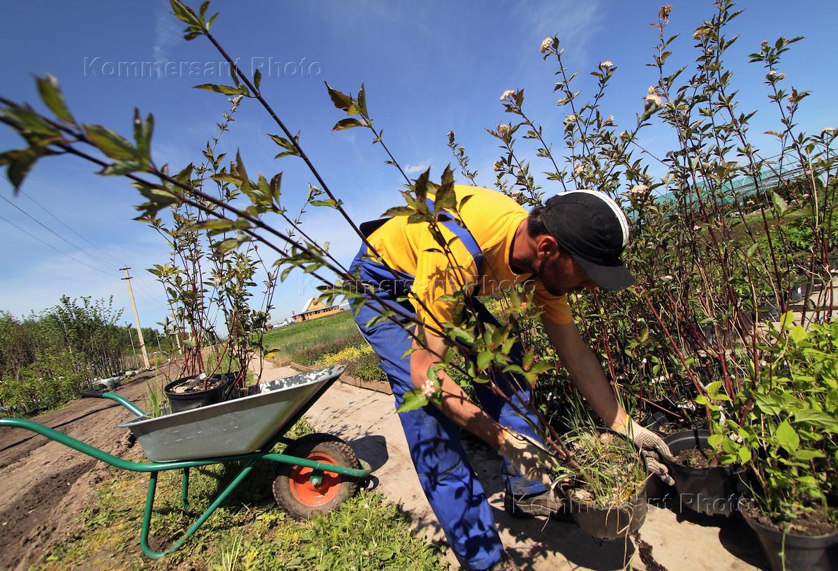 Корреспондент ИД "КоммерсантЪ" Иван Ждакаев в питомнике декоративных растений "Корни".