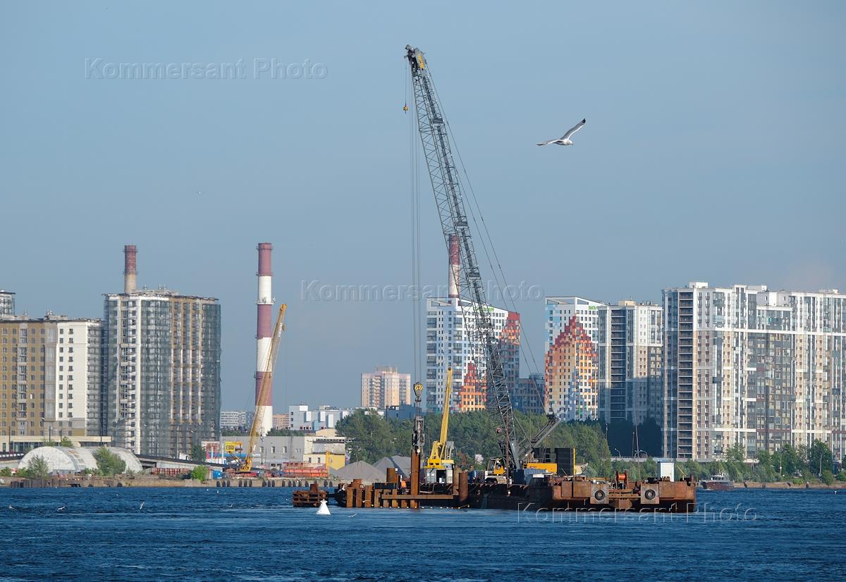 Строительство Большого Смоленского моста в Санкт-Петербурге.