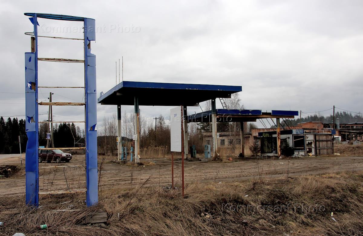 Заброшенная пустующая бензоколонка.