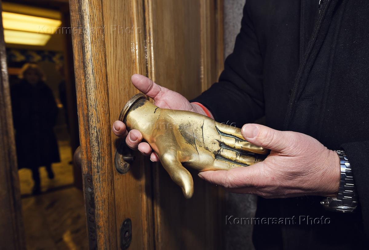Демонтаж руки со старого здания ИД "Коммерсантъ" на улице Врубеля.