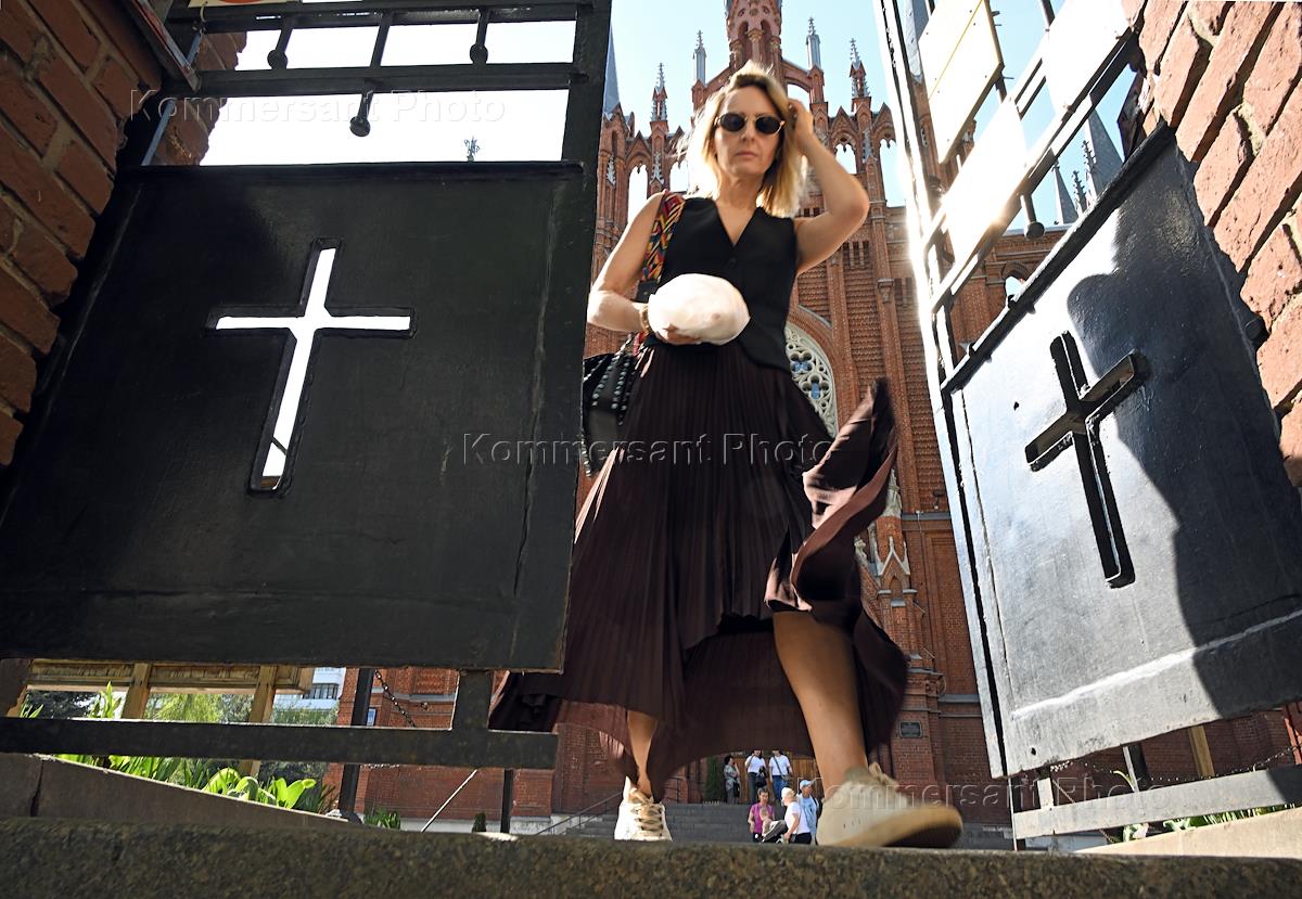 Празднование католической пасхи. Прихожане и священнослужители прихода Римско-католической церкви на…