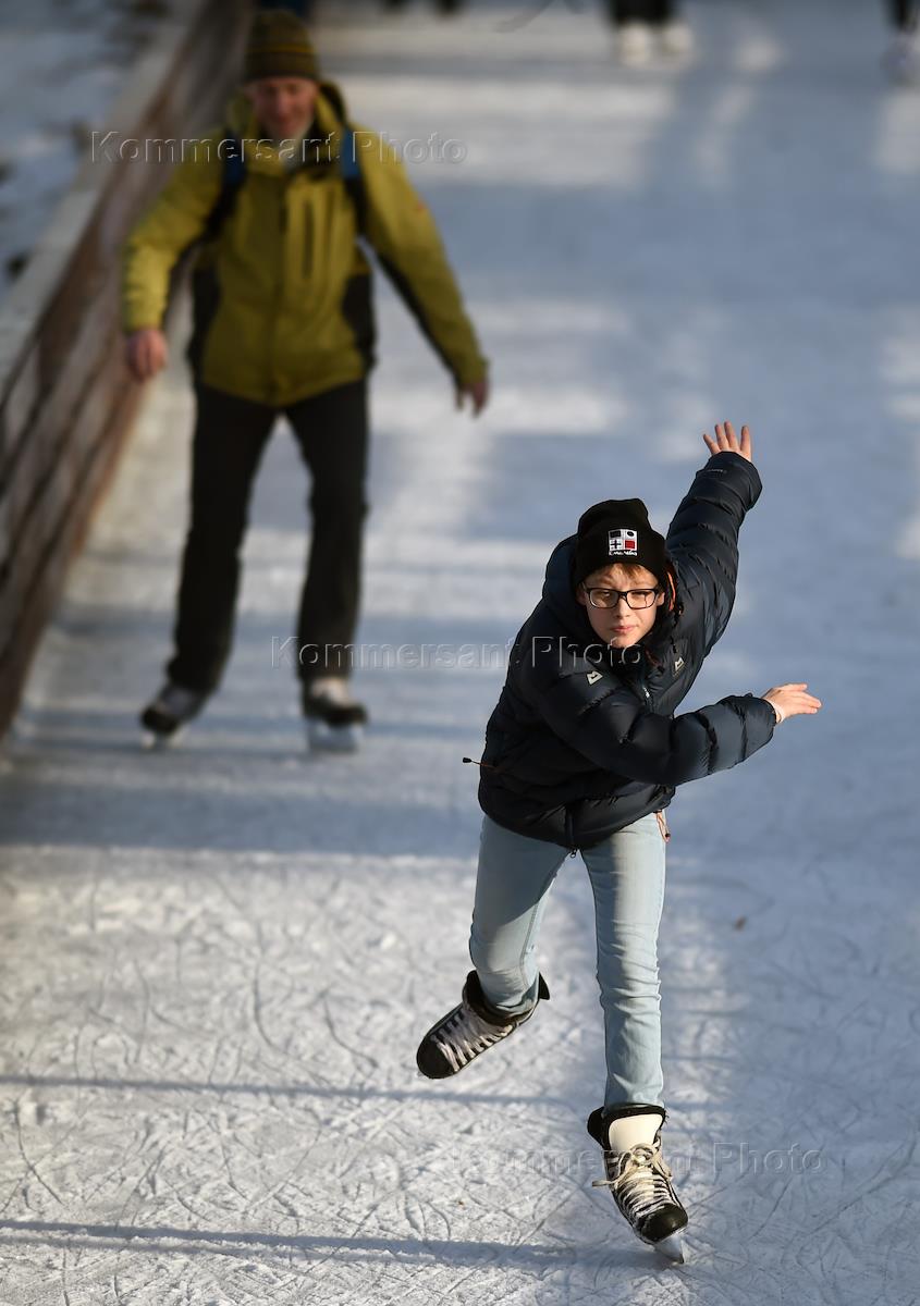 Каток в Парке Горького открылся для отдыха москвичей. Жанровая, очерковая, лирическая съемка в…