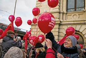 Праздничное шествие, посвященные 100-летию Октябрьской революции, в Калининграде.