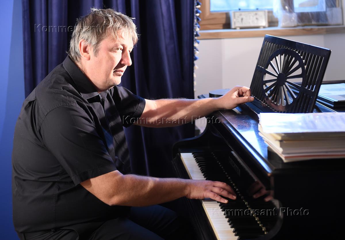 Пианист Борис Березовский во время интервью.