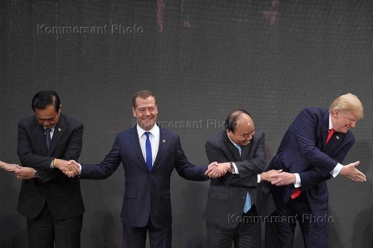 Саммит Ассоциации стран Юго-Восточной Азии (АСЕАН). Слева направо: председатель правительства России…