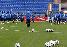 Пресс-конференция и открытая тренировка сборной России по футболу накануне товарищеского матча против сборной Испании.