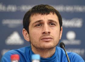 Игрок сборной России по футболу Алан Дзагоев во время пресс-конференции накануне товарищеского матча…