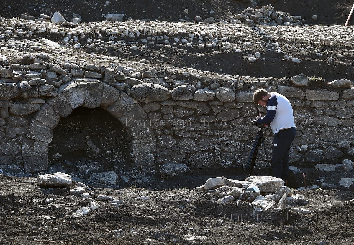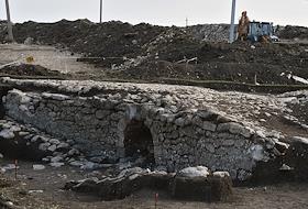 Строительство федеральной трассы "Таврида". Участок старинной дороги и каменный мост, найденные…