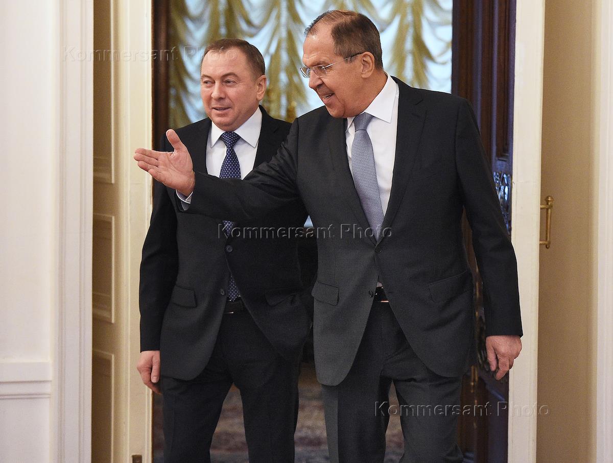 Министр иностранных дел России Сергей Лавров (справа) и министр иностранных дел Белоруссии Владимир…
